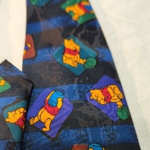 This tie features a playful pattern of multiple colors motifs on a smooth polyester fabric, offering a perfect blend of fun and professionalism. The vibrant colors and whimsical design make them an ideal accessory for adding a touch of personality to any outfit. Disney tie features Winnie the Pooh and is a must have for the fun guy in life .