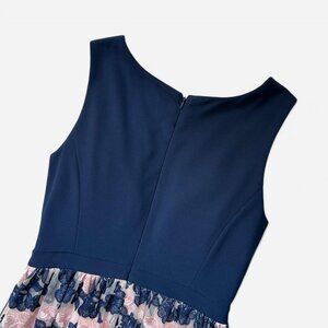 Round Neckline / Floral Embroidered Pink and Blue Skirt / Hidden Pockets