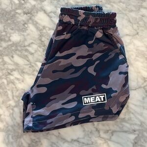 Blue and Purple Camouflage Shorts, Meat Sportswear, “Lifting Short” size Small