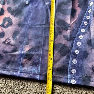 This stunning bodycon dress in a captivating blue and purple hue is perfect for a night out. It features long bell sleeves and a crew neck, creating a sophisticated and stylish look. The form-fitting design accentuates your silhouette, making it an ideal choice for cocktail events.