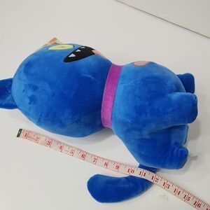 This charming stuffed animal features a vibrant blue and purple color scheme, large pointed ears, and a friendly monster-like expression. Its soft, plush body is perfect for cuddling, while the playful design adds a touch of whimsy to any toy collection.