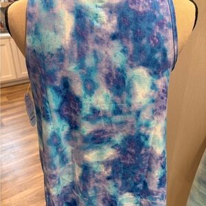 Vibrant and stylish, this blue and purple tie-dye tank top is perfect for casual outings. Enjoy the soft fabric and eye-catching design. These are kid tanks tops size xxl/18 these could also fit a women’s small. Pit to pit is 18”.
