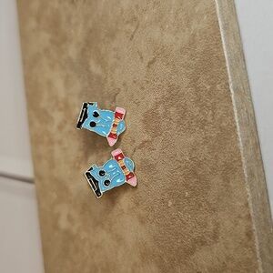Adorable blue and red owl earrings . These charming accessories add a playful touch to any outfit.