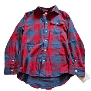NEW WITH TAGS!! Blue and Red boys large 10/12 Button Down Shirt. Such a great item to have in your kiddos closet for the fall/ winter season.