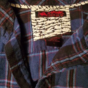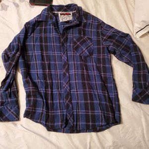 Long sleeve blue and red plaid button up. Comfortable fit, great color.