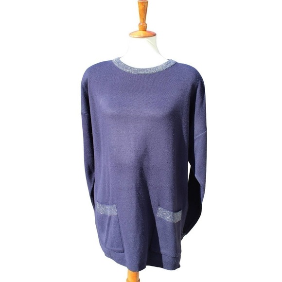 90s Vintage Bluewith Silver Glitter Accents on the collar and cuffs and shoulder pads.