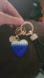 Blue and Silver Heart Keychain with Gold Accents