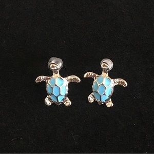 Blue and Silver Turtle Stud Earrings