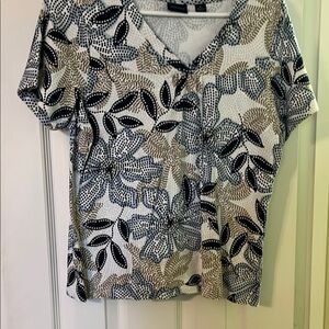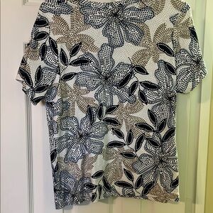 This chic blouse showcases a stylish detail, crafted in a soft fabric that drapes elegantly. The blue and tan color palette adds a touch of sophistication, making it ideal for both casual and formal settings.