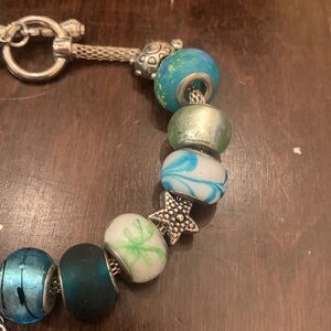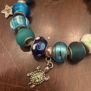 Blue and Turquoise Charm Bracelet with starfish and turtles