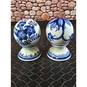 Blue and White Ball on Pedastal 3-Inch Blue & White Chinoiserie Style