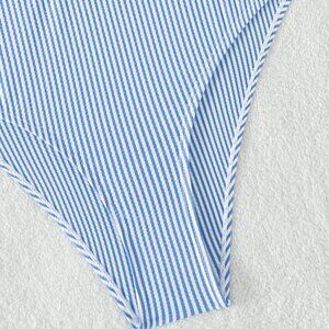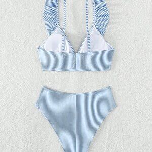 Blue and White Boho Womens Swim Summer Beach Striped Ruffle Trim Bikini Swimsuit