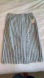 Blue and white striped, button-down midi skirt. Material is a bit heavier, like a stretchy denim. Little bit of stretch, but hugs your curves without feeling cheap. Love this skirt, but it ran small so I sized up and it fits perfectly! Please see the flat lay measurements on the pictures.