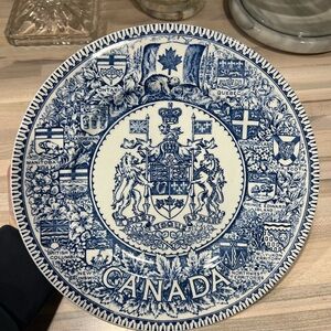 Beautiful blue and white decorative plate featuring Canada motifs and capitals. Perfect for display. Such a fun piece of decor if you have a sentimental connection with Canada. Lulu & Georgia plate wall inspired purchase. Just looking to downsize my dish collection. Great for a plate wall!