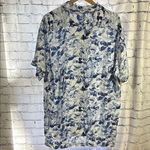 This casual button-down shirt features a unique blue and white abstract pattern, perfect for a relaxed summer look. Its lightweight and breathable fabric make it ideal for warm weather wear, ensuring comfort throughout the day.