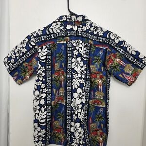 Blue and White Casual Button Down Shirt with Floral Design Boy Size 14