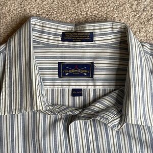 This casual button-down shirt features a stylish blue and white vertical stripe pattern, perfect for everyday wear. Made from a comfortable cotton blend, it offers a relaxed fit ideal for casual outings or semi-formal occasions. The classic design ensures versatility and timeless appeal.