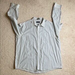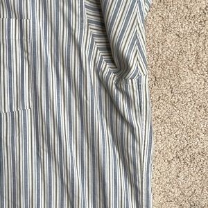Blue and White Casual Button Down Shirt with Vertical Stripes