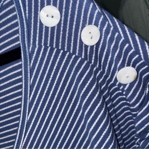 Blue and White Chevron Striped Button Embellished Relaxed Blouse USA