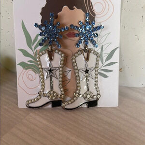 These elegant earrings feature a stunning combination of blue and white hues, perfect for adding a touch of sophistication to any ensemble. The dangling design offers a graceful movement, making them an eye-catching accessory for any occasion. Crafted with attention to detail, these earrings are a must-have addition to your jewelry collection.
