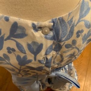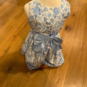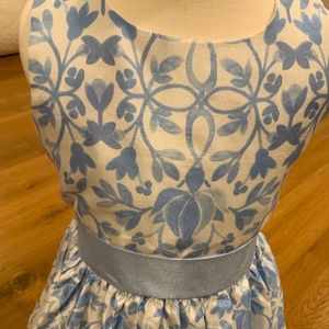 Dressed Up by Gymboree. Blue and white dress with pre-tied blue bow. Size 10. Shell 100% polyester/lining 100% polyester.