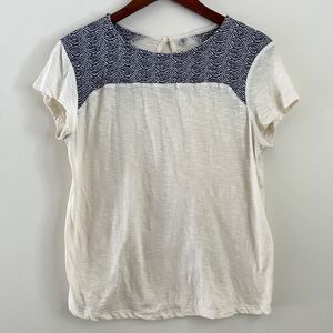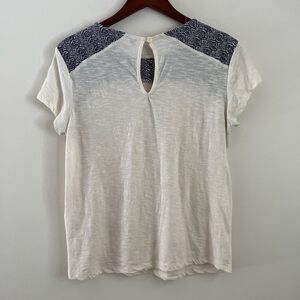 Blue and White Embroidered Short Sleeve Top | Size Small