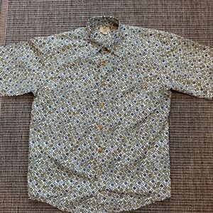 This casual button-down shirt features a vibrant floral pattern in blue and white, perfect for a relaxed and stylish look. Its short sleeves and classic collar make it ideal for everyday wear, combining comfort with a touch of elegance.