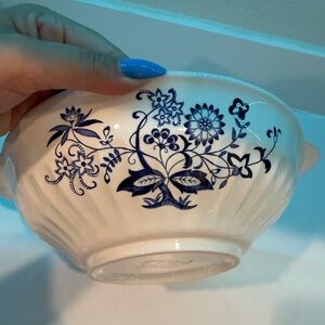Pieces from this pattern, including covered vegetable bowls, are often found in vintage and antique markets online.