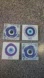 Set of four coasters featuring blue and white designs with 'Greece' text.