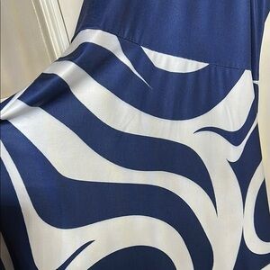 This stunning dress features a sleeveless halter neckline and a captivating design, perfect for a night out. The bold blue and white abstract pattern creates a dramatic visual effect, while the flowing silhouette ensures comfort and elegance.