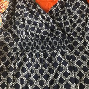 Like new! Blue and white dress by Land’s End. Has a nautical feel to the pattern. The back has a gathered section (3rd photo) and the front has small pleats to give it the perfect fit! Excellent condition, like new! 100% cotton, machine wash. The length is 37” from shoulder to bottom of dress.