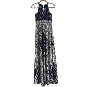 Blue and White Patterned Maxi Dress Patterned Size 6 Wedding Guest Shower Boho