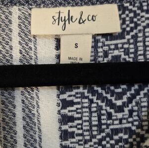 Stylish and comfortable, this blue and white patterned top is perfect for any occasion. The intricate design adds a touch of elegance to your wardrobe.