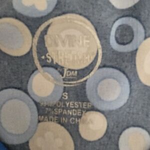 Stylish women's scrub top featuring a vibrant blue and white pattern. Perfect for adding a pop of color to your work week.
