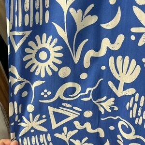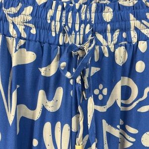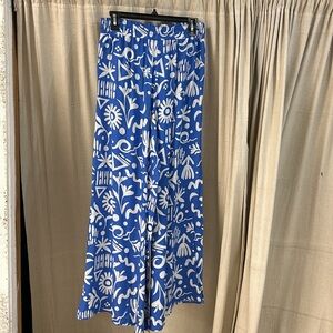 Blue and White Print Wide Leg Pants with Pockets and Tie Waist - Very J