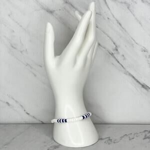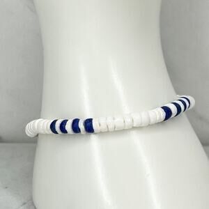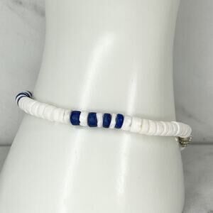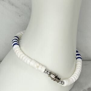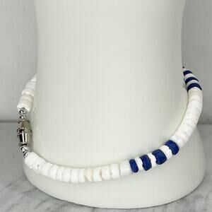 Blue and White Shell Beaded Screw Clasp Bracelet
