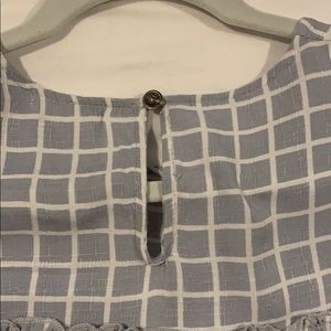 Blue and White Square Pattern Ruffle Blouse