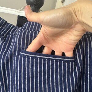 These Blue and White Stripe BCG Shorts are super cute and comfy. I wish I could still wear them but I found a size 8 listed on Poshmark I can buy to replace these, I love them that much. They have 4 pockets on them. The button on these shorts is a bit tight which makes it a secure button, there is also a zipper closure in the front. These shorts are 98% cotton and 2% Spandex. I can do flat lay measurements if you need them.