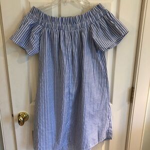 Adorable blue and white striped off the shoulder dress. Like new condition!! Size 10.