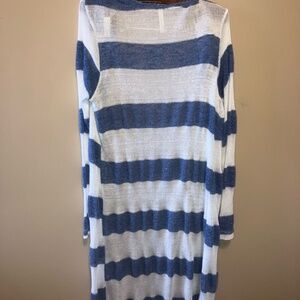 Blue and White Striped Cardigan, Knitted, Lightweight Cute as swimsuit cover up, or just layering in general! Super Cute