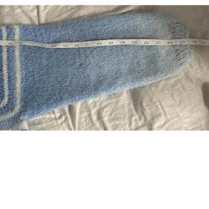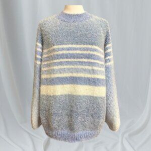 Blue and White Striped Fuzzy Sweater, Soft Women’s Knit Pullover Cozy