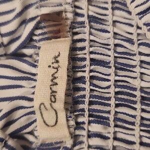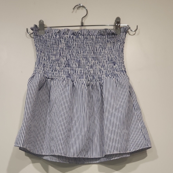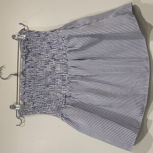 Stylish smocked top with blue and white stripes. Perfect for casual outings.