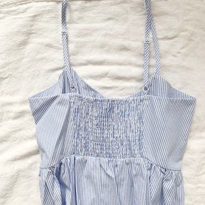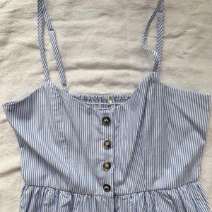 This dress is very flattering with a button down front and small adjustable straps. Relaxed pockets in the front. Perfect for summer!