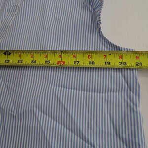 Blue and White Striped V-neck Ruffle Sleeveless Blouse Top Shirt Women Size XL L