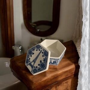 Blue and White Trinket Dish | Eiffle Tower Trinket Box | Blue and White Decor
