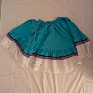 Chic and stylish, this blue and white skirt is perfect for any occasion. The vibrant blue color is complemented by delicate white lace detailing, making it a must-have addition to your wardrobe. Originally designed as a square dance skirt but can be worn as just a cute skirt too.