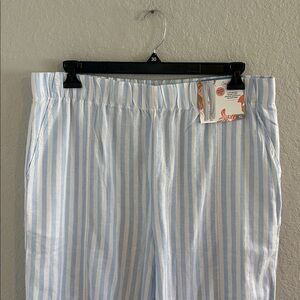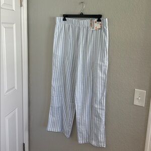 Blue and White linen blend Striped Pants