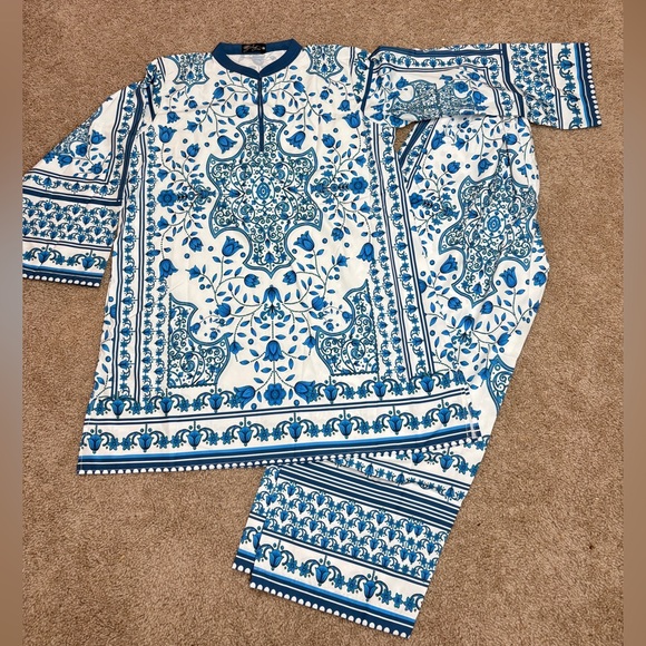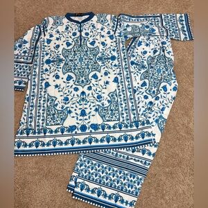 Comfortable and stylish kids pajamas in a beautiful blue and white pattern. Perfect for a cozy night's sleep.