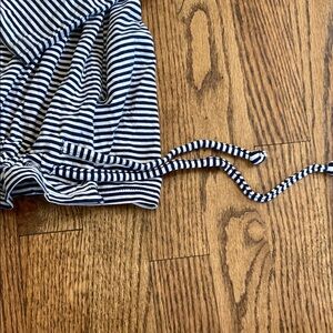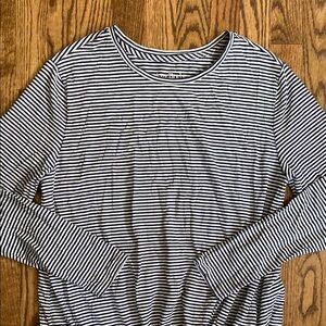 Blue and White stripe long sleeve, drawstring bottom Any Body shirt, size medium