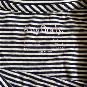 Blue and white stripe, drawstring bottom, long sleeve Any Body shirt, size medium. Excellent, like new condition, soft fabric. Ships quickly from smoke free/pet friendly home.